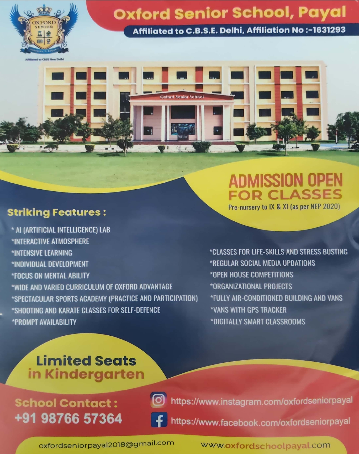 "Oxford Senior School is situated al Barmalipur Road, paya1." "Since its inception in 20 19', the school has established on identity of its own and has become one of the tending educational institutions in North India." This school no\v has strength of more than 320 students "whose academic, mental, physical and cultural needs are taken care of by a team of around 70 efficient and dedicated" "members of tJie teaching & non-teaching staff. The management of Oxford Senior School is vested in the Governing body which manages the affairs of the school with management , as its President . The Society by foundation., tradition and character is essentially religious in nature. It is t11e Society's intention that in Oxford School, all children of" "the Religious community should, by study and instructions, be led to the .knowledge of religion as the saviour and be built up" "in the God faith,witness and service. The same privileges are" available to other students if they so desire. Oxford Senior firmly believe in the cordial relationship with parents to work hand in hand with them for the entire "development of the students. Consequently , to update parents with the latest technology for upgrading the students."